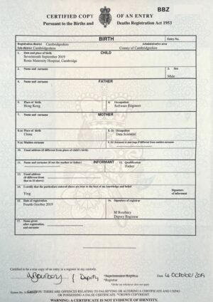 - Parental details may be required if you are applying for a certificate on behalf of a child or another individual
